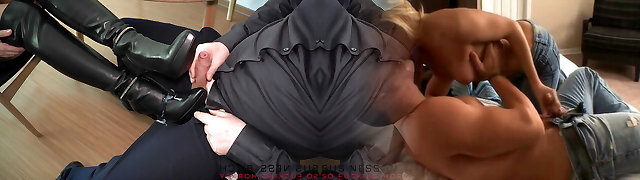 Middle-aged man got his butt polished with dildo and strap-on by experienced imperious lady in black outfit