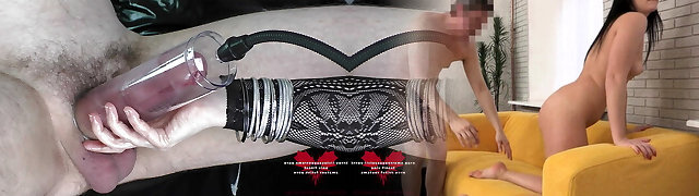 Fuck Day Part 1: Domme Lilith applies the penis pump and squeezes precum out of chisel.