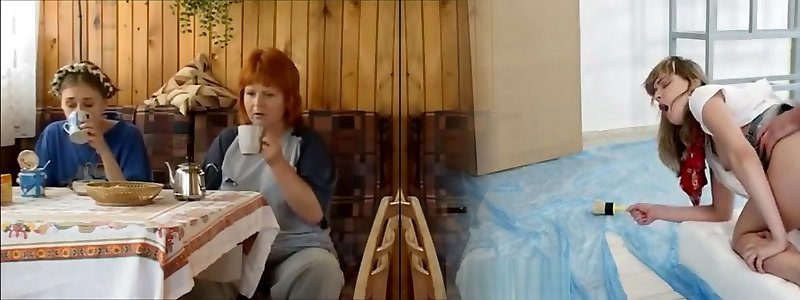 Granny predominates and fucks young lesbian girl