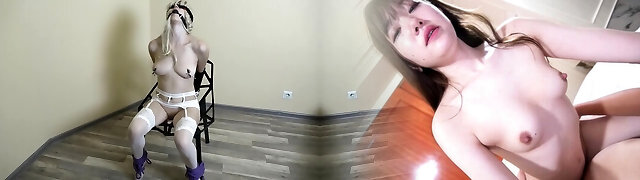 Superb blond slut is tied up and ready for action