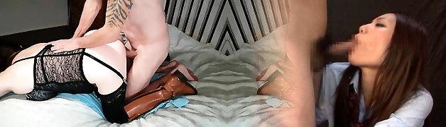 Abnormal Japanese masturbate her hairy labia while her man fucks her in anal