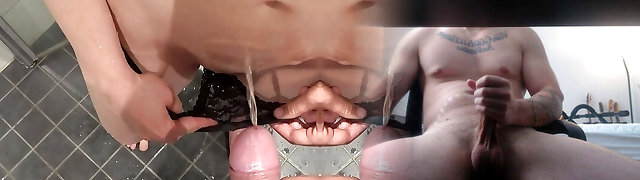 Drinking Stepdaddy's cum in a drooling deep throatpie
