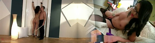 Bare ass trussed up sub with big tits gets spanked