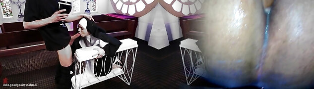 Puny Blonde Lives out Fantasy Nun Gangbanged by 5 Priests in Chapel