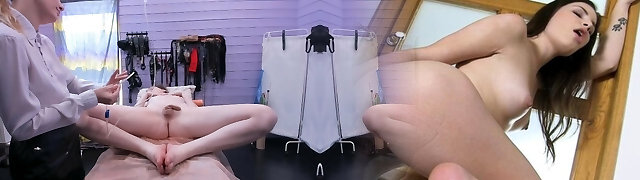 Kinky CFNM video with blonde babe Em Yang pegging her paramour