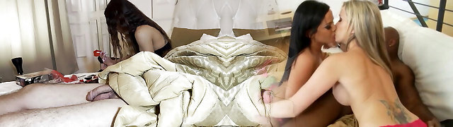Strapon Cfnm Big-boobed Domina Fucks Bfs Asshole With Lov