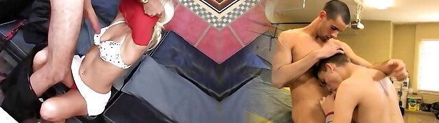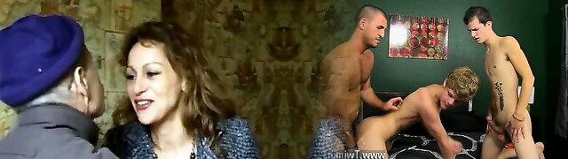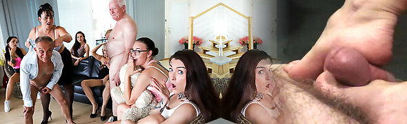 Slideshow: Grandpa with young bisexual couple and their teen friends