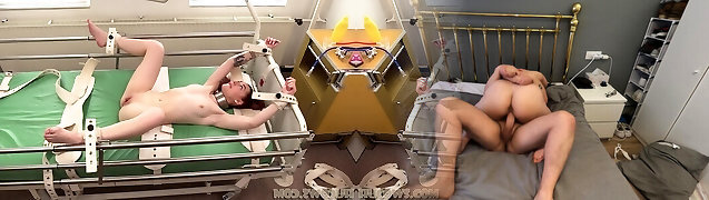 The neighbor's new wife was strapped up and made an obedient mega-bitch to whom he showed a rough bdsm control climax and fisting fuck