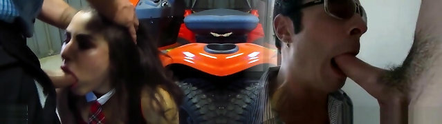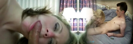 The blonde schoolgirl gives a highly wet mouth fuck to her beau