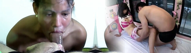 Japanese milf bitch gives her snatch to her husband's coworker at dinner time!