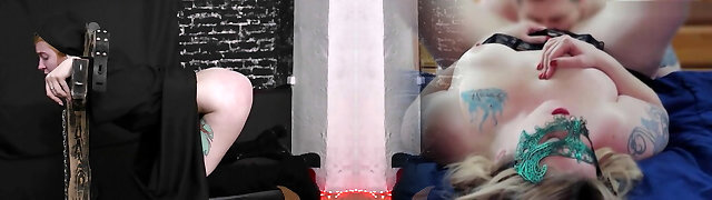 Slave lady is bound up and whipped by a sexy nun