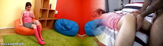 Shy Angela - Teeny sucking a man rod and masturbating