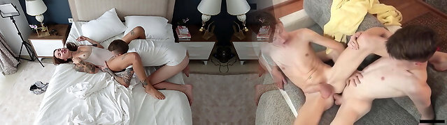 The boy is cheating on his girlfriend with a pretty Russian housekeeper