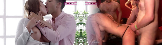 Pervert spunk and piss swapping from a teen girl and a milf, at a hard bareback Gang-fuck!