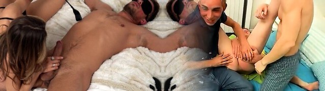 Swinger swap for a boob challenge between these kinky couples.