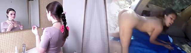 Double invasion for skinny flat chested inexperienced teen cutie live at sexycamx