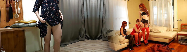 Попросила госпожу выебать своего мужа. (Страпон, кончает)