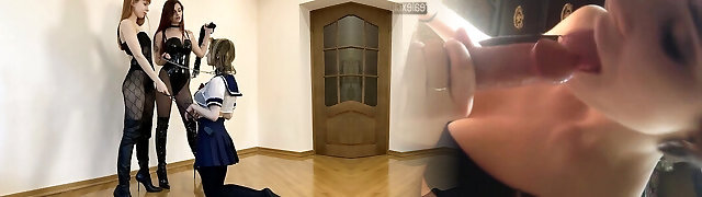 Double Lesbian Domination - Pet Play and Bootie Idolize with Subby Schoolgirl
