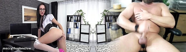 Pervy dark-haired in glasses and college uniform Sasha Sparrow wanna go solo
