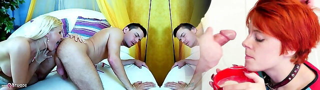 Blonde babe deep throat and prostate massage for tight hubby
