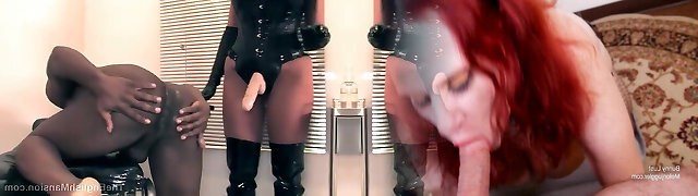 German Domme Fucks Slaves With Strap-on Dildo In The Booty And Lets Him Make A