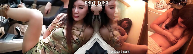Uniformed Japanese bomb enjoys a spanking by her strong commader