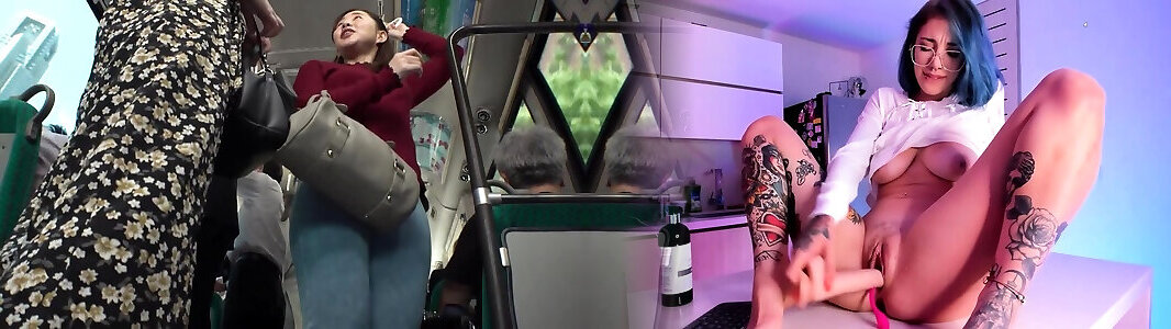 B3D2301- Wife with a big butt being mischievous by a molester on the bus