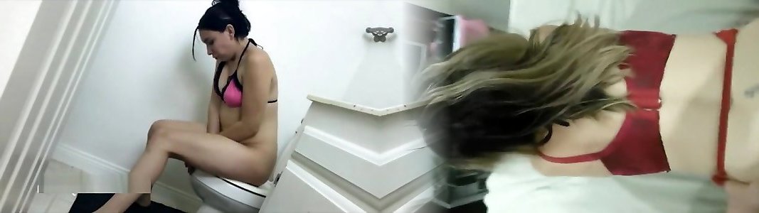 Jaw-dropping tramp in black stocking peeing on public restroom