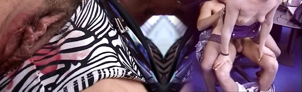 Dissolute light-haired mummy in knickers sits on face of a bounded stud
