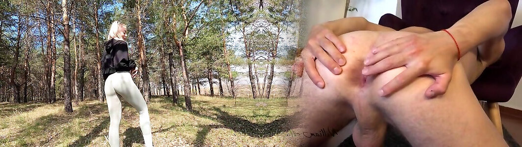 Blonde cyclist shows peach buddy to her partner and fucks in public park