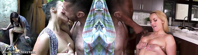 Nasty stepfamily fucks in the backyard.