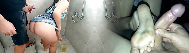 Donk fucking when she’s peeing in public shower