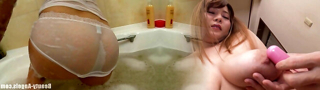 Insatiable babe gets horny with her body during a nice bath