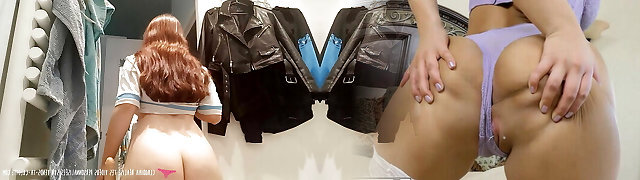 Vends-ta-culotte - Sexy amateur girl in football jersey playing with a faux-cock in her bathroom