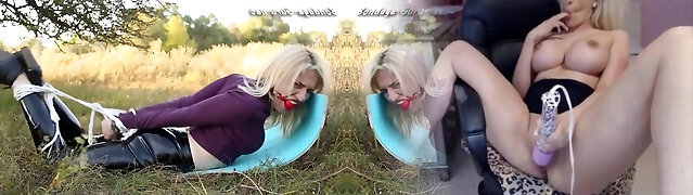 Perfect Lingerie clad Ballgagged blonde in a tight demanding restrain bondage
