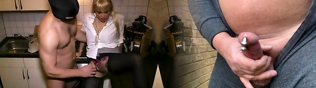 Dominatrix empties subs balls into a glass with multiple ruined climaxes