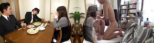 Japanese milf bitch gives her snatch to her husband's coworker at dinner time!