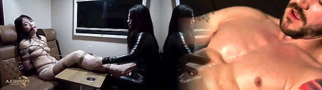 Asian Latex Catsuit Ratchet Gag Ballgag Rope Hogtied Bondage