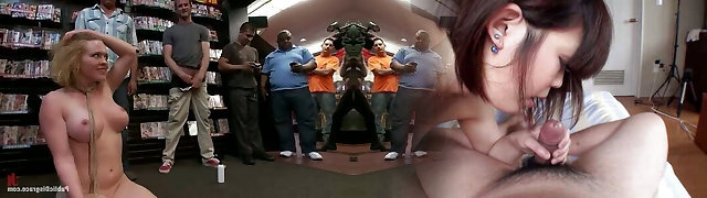 Busty blonde girl gets banged in a shop in public