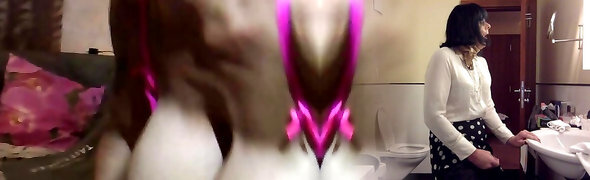 Piss compilation - sissy, chastity belt, locked, crossdresser, public, in front of doll, cock box