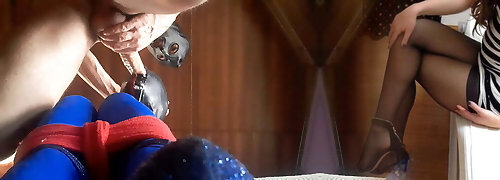 TEASER Laura is frogtied in latex catsuite and high heels, throated with a lip open mouth gag Point Of View