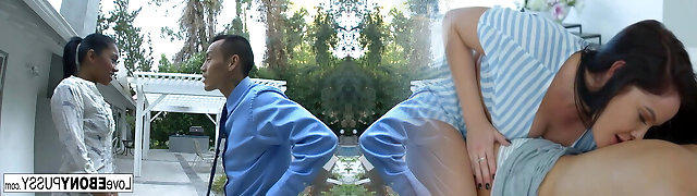 Lil' Half Asian Teen Lana Violet talk to First BBC Bi-racial Fuck at Pool