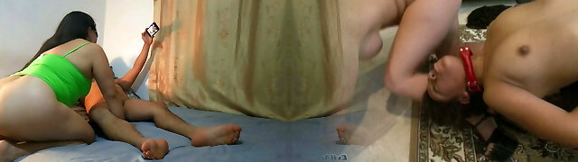 Sadofetishcouple Predominant Slaves Tied Balls With Black Heels And Bare Feet