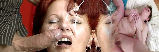 Subjugated granny gets the facial of her life!