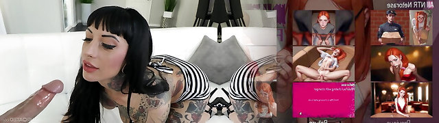 Extremely tattooed brunette Jessie Lee is into sucking rock-hard boner cock