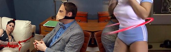 Dominatrix Nika and her 2 slaves. Games with spooge in condoms. Jizm in a condom from the ass.