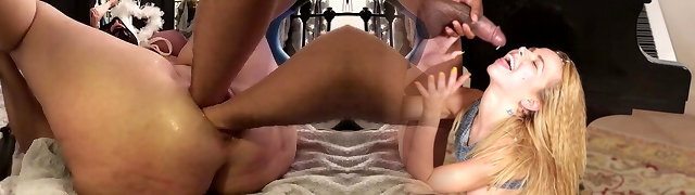 Monster strapon, twat and anal fisting and a bunch of g/g orgasms with a dominant Cougar in stockings