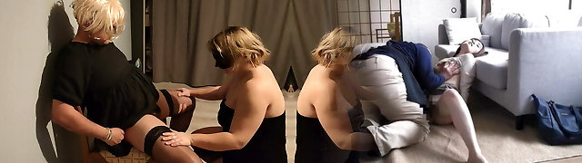 Two hot femdom Mistresses fisting belt cock bisex domination
