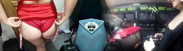 Fuck-fest in the bathroom on a chair on my back Romping my slave in close-up, and poking him in the balls that he already bou