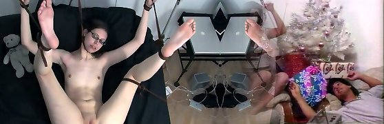 1 Super-hot GIRL WITH GLASSES PURPLE BALL Ball-gagged... AND ROPE BOUND